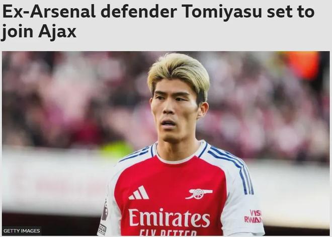 BBC消息,前阿森纳后卫富安健洋即将加盟阿贾克斯直到本赛季结束,日本人将在周二参加体检。